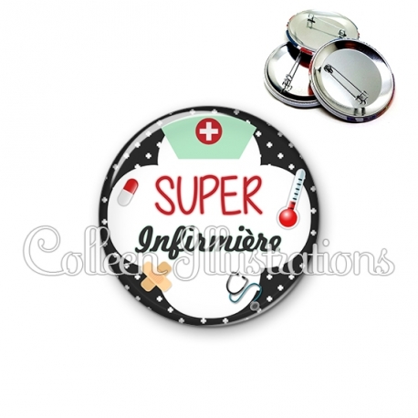 Image imprimée en haute résolution sur papier de qualité, protégée d'un film plastique, et sertie sur une coque et épingle métallique.