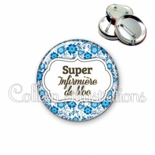 Image imprimée en haute résolution sur papier de qualité, protégée d'un film plastique, et sertie sur une coque et épingle métallique.