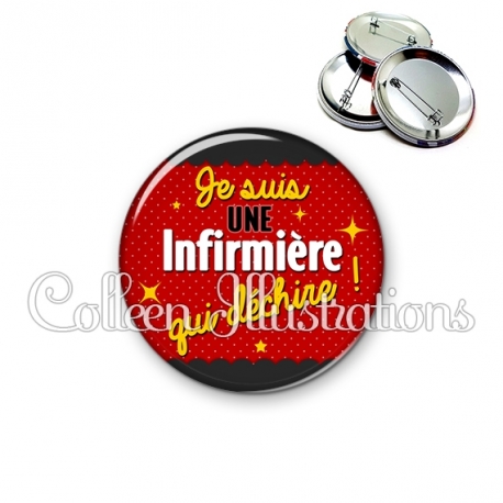 Image imprimée en haute résolution sur papier de qualité, protégée d'un film plastique, et sertie sur une coque et épingle métallique.