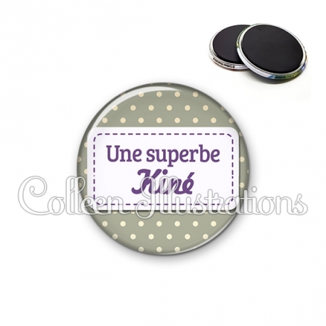 Image imprimée en haute résolution sur papier de qualité, protégée d'un film plastique, et sertie sur une coque métallique avec dos aimanté.
