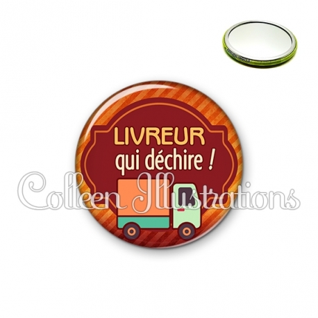 Miroir simple avec dos métallique décoré d'une image fantaisie et texte.