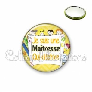 Miroir simple avec dos métallique décoré d'une image fantaisie et texte.