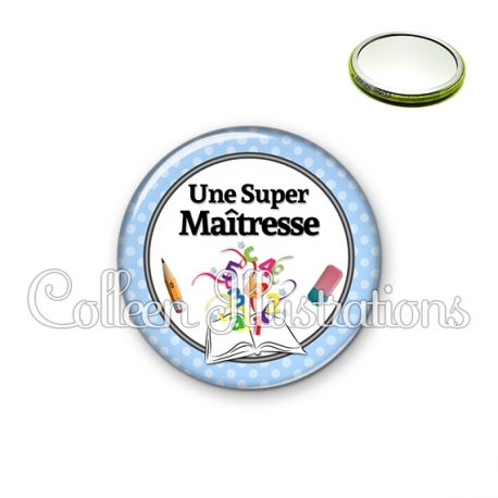 Miroir simple avec dos métallique décoré d'une image fantaisie et texte.