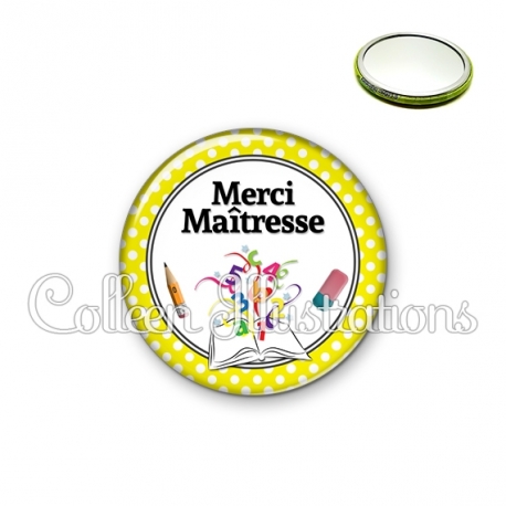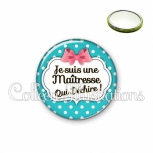 Miroir simple avec dos métallique décoré d'une image fantaisie et texte.