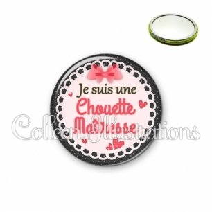 Miroir simple avec dos métallique décoré d'une image fantaisie et texte.