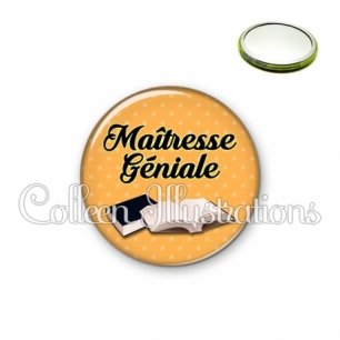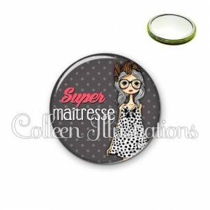 Miroir simple avec dos métallique décoré d'une image fantaisie et texte.