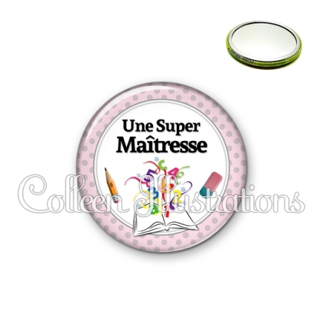 Miroir simple avec dos métallique décoré d'une image fantaisie et texte.