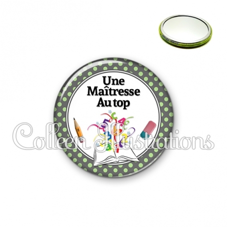 Miroir simple avec dos métallique décoré d'une image fantaisie et texte.