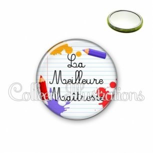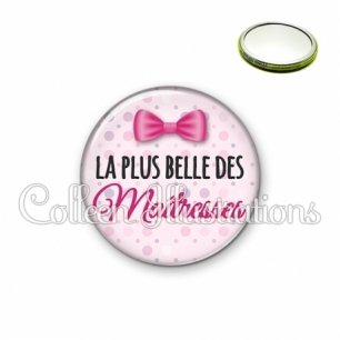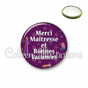 Miroir simple avec dos métallique décoré d'une image fantaisie et texte.