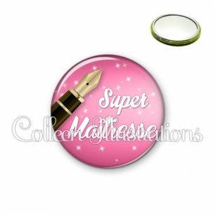 Image imprimée en haute résolution sur papier de qualité, protégée d'un film plastique, et sertie sur une coque métallique avec dos miroir. Une seule face, non grossissante.