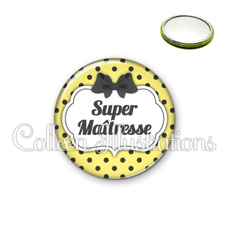 Miroir simple avec dos métallique décoré d'une image fantaisie et texte.