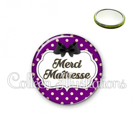 Miroir simple avec dos métallique décoré d'une image fantaisie et texte.