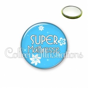 Miroir simple avec dos métallique décoré d'une image fantaisie et texte.