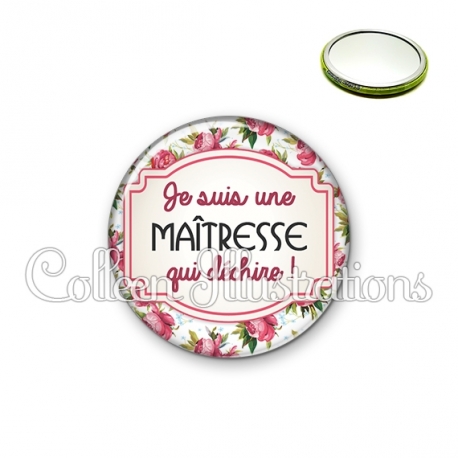 Miroir simple avec dos métallique décoré d'une image fantaisie et texte.