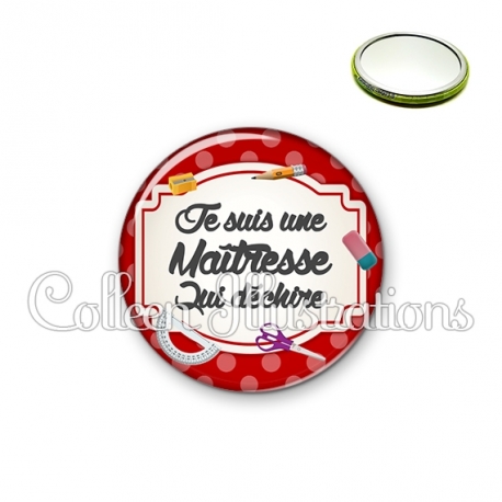 Miroir simple avec dos métallique décoré d'une image fantaisie et texte.