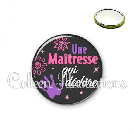 Miroir simple avec dos métallique décoré d'une image fantaisie et texte.