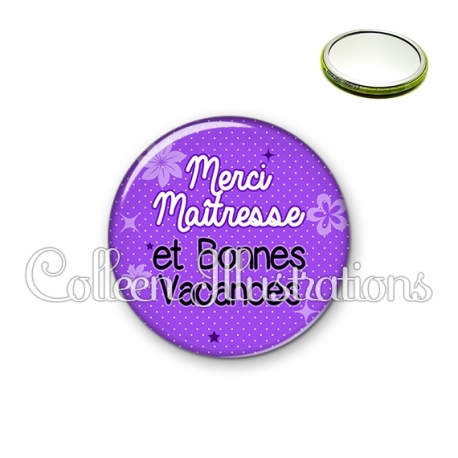Miroir simple avec dos métallique décoré d'une image fantaisie et texte.