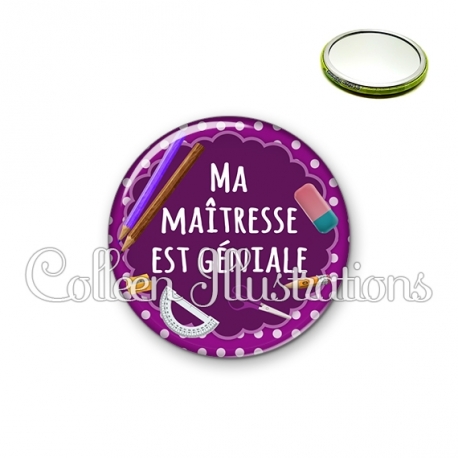 Miroir simple avec dos métallique décoré d'une image fantaisie et texte.
