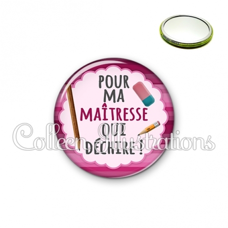 Miroir simple avec dos métallique décoré d'une image fantaisie et texte.