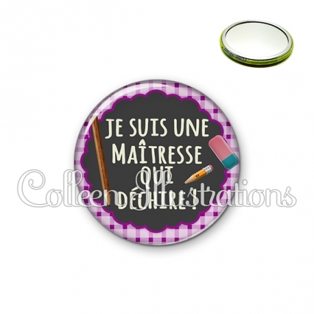 Miroir simple avec dos métallique décoré d'une image fantaisie et texte.