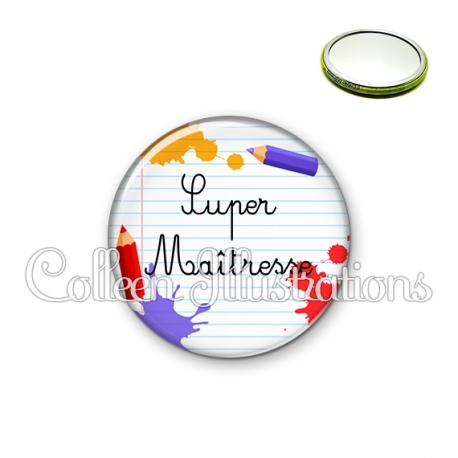Miroir simple avec dos métallique décoré d'une image fantaisie et texte.