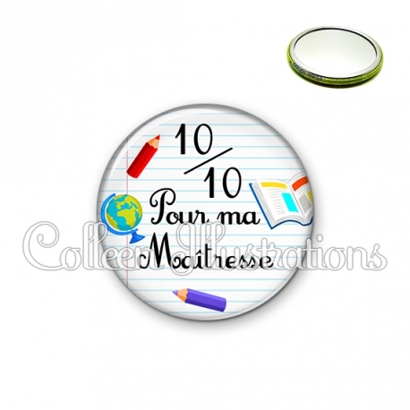 Miroir simple avec dos métallique décoré d'une image fantaisie et texte.