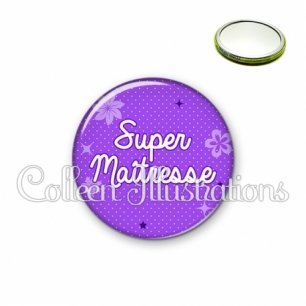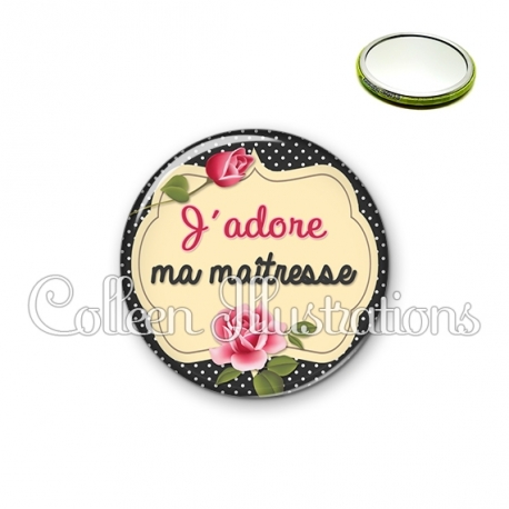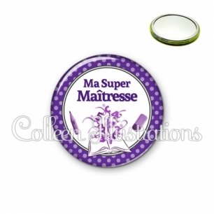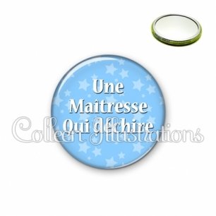 Miroir simple avec dos métallique décoré d'une image fantaisie et texte.