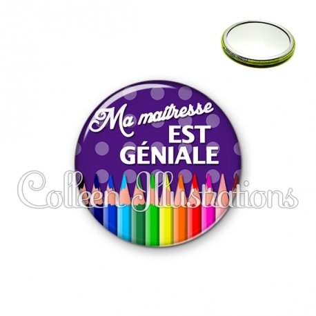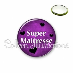 Miroir simple avec dos métallique décoré d'une image fantaisie et texte.
