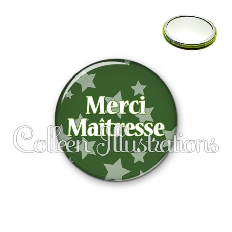 Miroir simple avec dos métallique décoré d'une image fantaisie et texte.