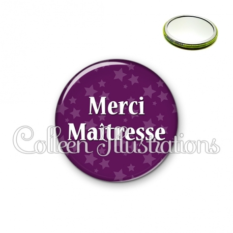 Miroir simple avec dos métallique décoré d'une image fantaisie et texte.