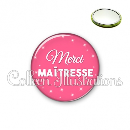Miroir simple avec dos métallique décoré d'une image fantaisie et texte.