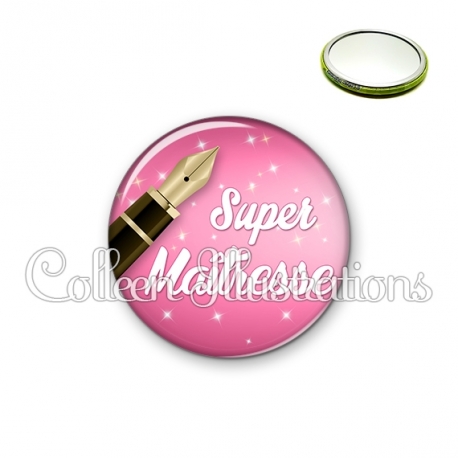 Miroir simple avec dos métallique décoré d'une image fantaisie et texte.