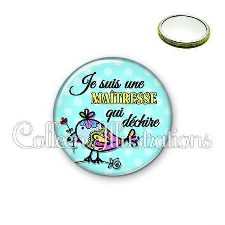 Miroir simple avec dos métallique décoré d'une image fantaisie et texte.