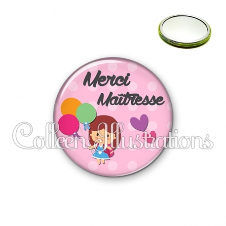 Miroir simple avec dos métallique décoré d'une image fantaisie et texte.