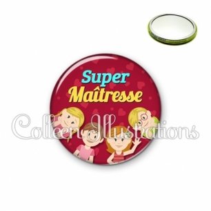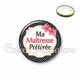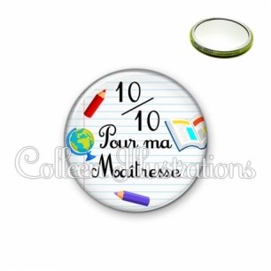 Miroir simple avec dos métallique décoré d'une image fantaisie et texte.