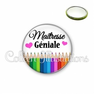 Image imprimée en haute résolution sur papier de qualité, protégée d'un film plastique, et sertie sur une coque métallique avec dos miroir. Une seule face, non grossissante.