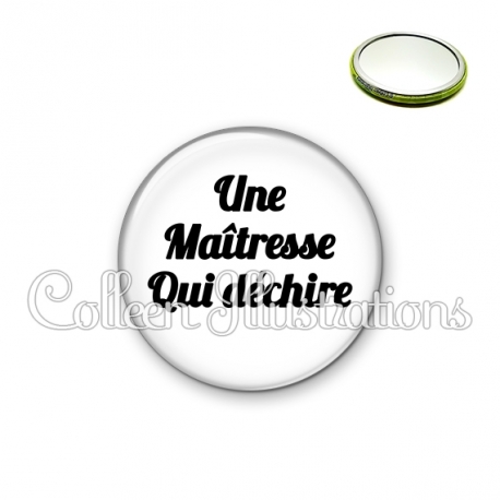 Miroir simple avec dos métallique décoré d'une image fantaisie et texte.