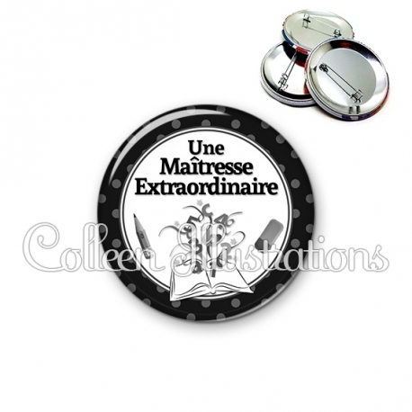 Image imprimée en haute résolution sur papier de qualité, protégée d'un film plastique, et sertie sur une coque et épingle métallique.