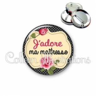 Image imprimée en haute résolution sur papier de qualité, protégée d'un film plastique, et sertie sur une coque et épingle métallique.