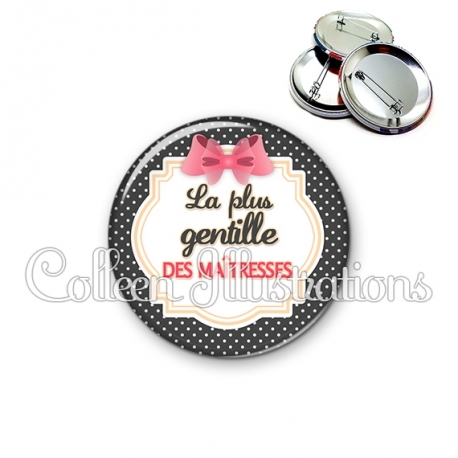 Image imprimée en haute résolution sur papier de qualité, protégée d'un film plastique, et sertie sur une coque et épingle métallique.