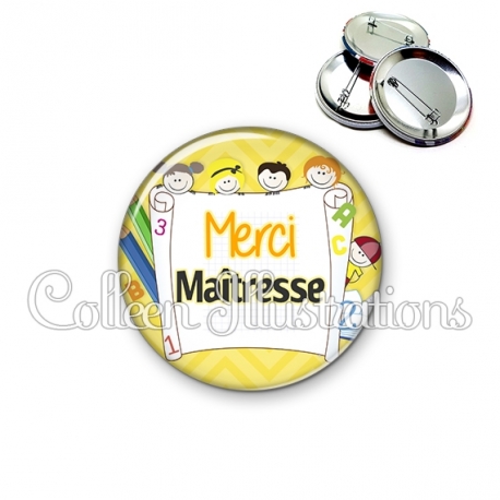 Image imprimée en haute résolution sur papier de qualité, protégée d'un film plastique, et sertie sur une coque et épingle métallique.