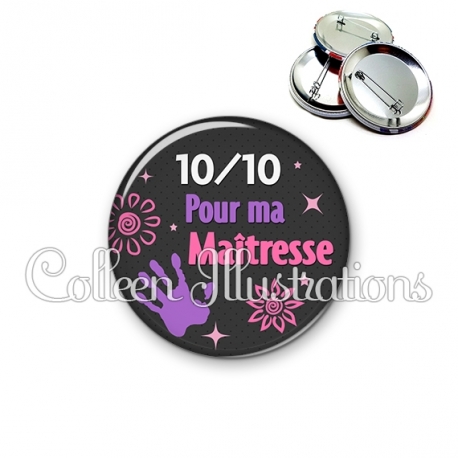 Image imprimée en haute résolution sur papier de qualité, protégée d'un film plastique, et sertie sur une coque et épingle métallique.