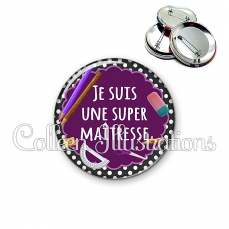 Image imprimée en haute résolution sur papier de qualité, protégée d'un film plastique, et sertie sur une coque et épingle métallique.