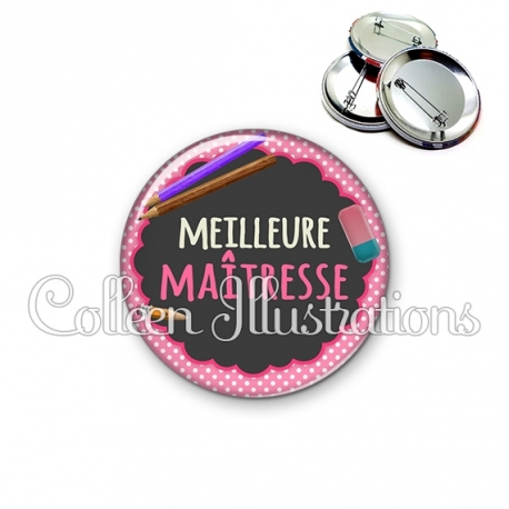 Image imprimée en haute résolution sur papier de qualité, protégée d'un film plastique, et sertie sur une coque et épingle métallique.