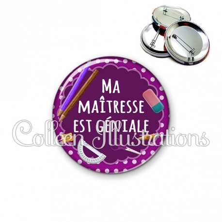 Image imprimée en haute résolution sur papier de qualité, protégée d'un film plastique, et sertie sur une coque et épingle métallique.