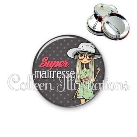 Image imprimée en haute résolution sur papier de qualité, protégée d'un film plastique, et sertie sur une coque et épingle métallique.