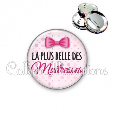 Image imprimée en haute résolution sur papier de qualité, protégée d'un film plastique, et sertie sur une coque et épingle métallique.