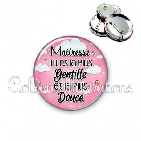 Badge Maîtresse tu es la plus gentille et la plus douce.