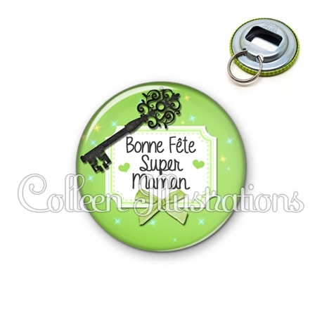 Image imprimée en haute résolution sur papier de qualité, protégée d'un film plastique, et sertie sur une coque métallique avec dos décapsuleur.