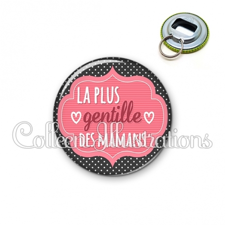 Image imprimée en haute résolution sur papier de qualité, protégée d'un film plastique, et sertie sur une coque métallique avec dos décapsuleur.